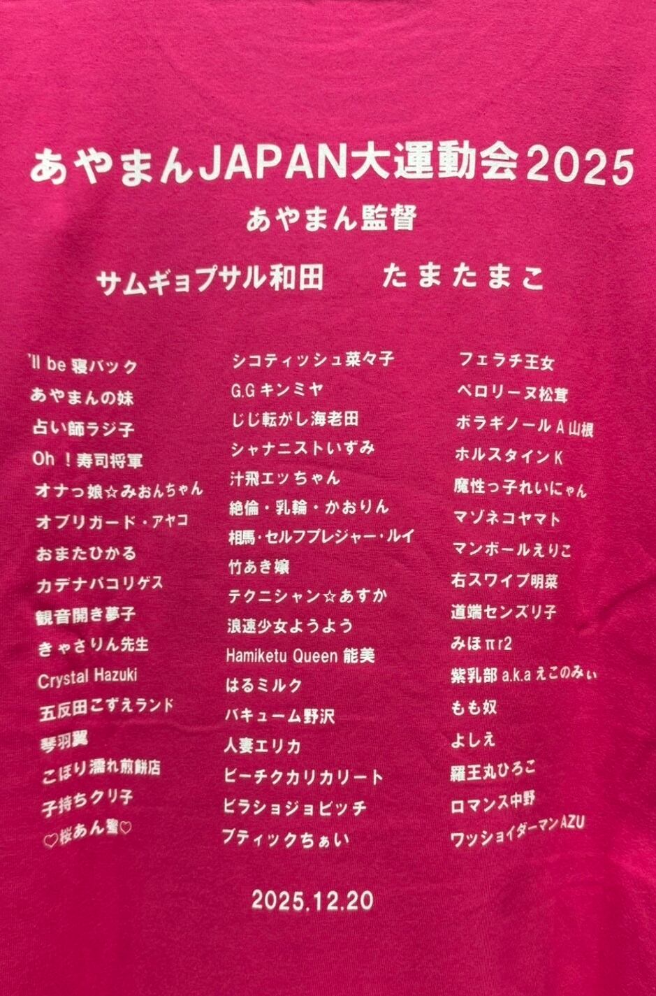 このTシャツは、運動会に参加される方々やあやまんファンにはたまらないアイテム!